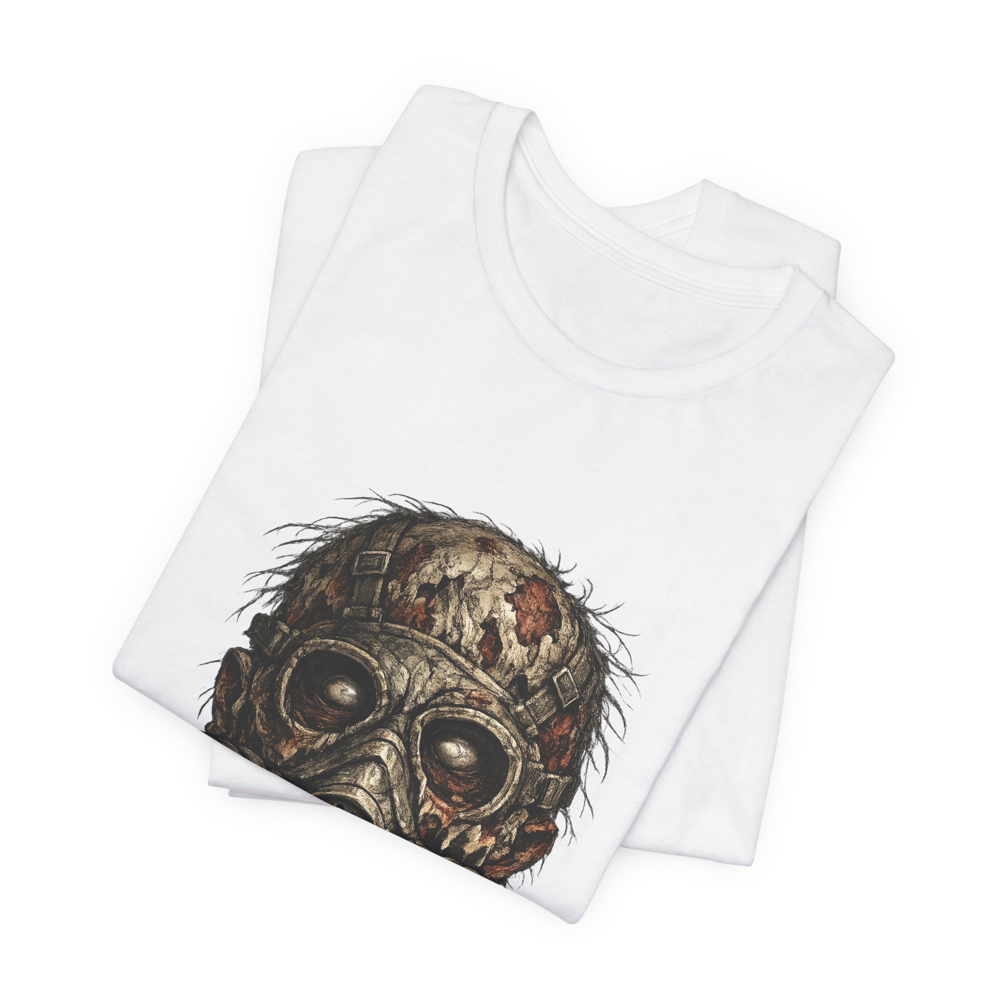 A lightweight, breathable tee that wears like a favorite from the first wash and carries a bold, post-apocalyptic edge. The detailed front artwork—an intense, weathered figure in a gas mask—sits cleanly on a soft white canvas, making the illustration feel both raw and wearable. Thoughtful construction like side seams, shoulder tape, and a ribbed knit collar keep the silhouette neat and comfortable through active days or layered looks. Ethically made blanks and a tear-away label make it easy to wear for those who care about comfort and responsible production. This shirt sits well with gritty streetwear, late-night shows, or simply when you want your look to say you’ve seen some things and still stand steady.
